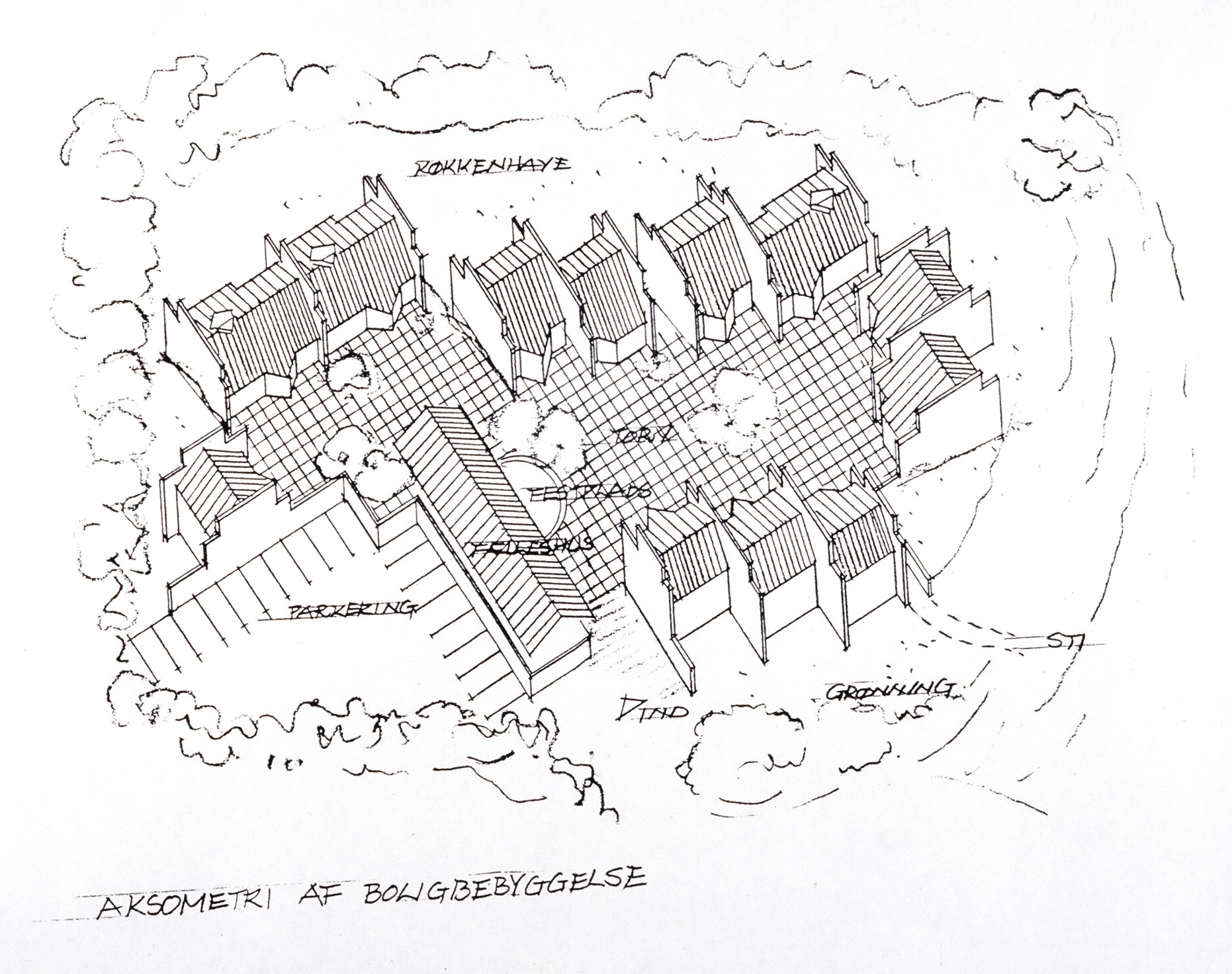 「箱舟」は住民が設計者と共同で、コーディネイターを置かず、 土地購入から建設、入居まで管理したプロジェクトである。 丘のてっぺんにある6300㎡の土地に住宅12戸とコモンハウスが実現した。 各戸、地下1階、中2階、2階から成り、住宅のプランは4種類あるが 平均120㎡である。子育て世代も多く、コモンハウスは学校から帰った 子供の遊び場や週2回の共同の夕食の場所として活躍している。 建築後16年目の調査では、この間移転したのは4世帯のみであった。